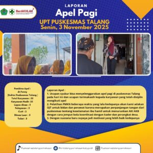 Tak Berkategori 4 November 2025 APEL PAGI SENIN 3 NOVEMBER 2025 Diposkan Oleh:puskesmas talang 0 Komentar